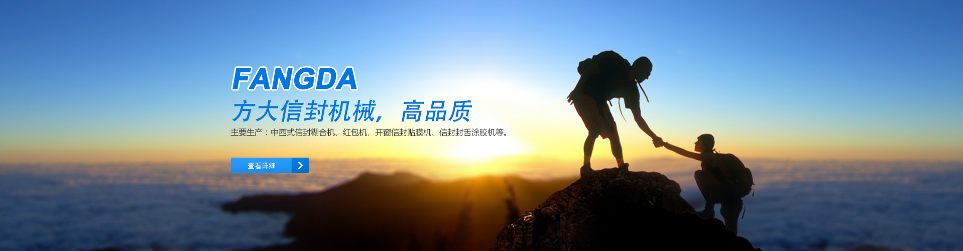 瑞安方大信封機械有限公司,是專業生產信封機糊合設備系列產品的企業,主要產品有:中西式信封糊合機、紅包機、開窗信封貼膜機、信封封舌涂膠機等。實力來自規模,品質源自專業。我廠擁有專業老練的工程設計人員,經驗豐富的生產安裝人員,嚴謹認真的質量檢驗人員,從而保證了所生產機械的優良品質。此外,我廠也將從技術上、性能上不斷改進提高,以更好的滿足客戶的需求?!翱蛻糁辽希諡楸尽笔俏覐S長期一貫的服務理念,從安裝、測試、保養、維修等售后服務,我們會給予客戶充足的信息資訊與技術支持,因此在業界獲得良好的口碑及信譽,您的滿意是我們的榮耀!歡迎您來電查詢、來人參觀,我們一定能給你滿意的答復!秉承“顧客至上,銳意進取”的經營理念,堅持“客戶為先”的原則為廣大客戶提供溫馨的服務。歡迎惠顧!